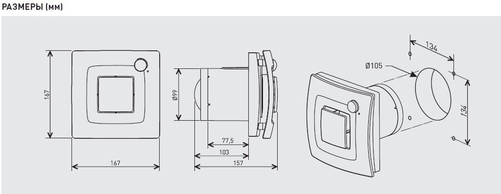 | Особенности: | Бесшумная крыльчатка, Три скорости |